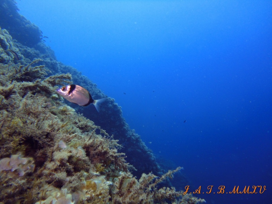 Bienvenido / Fotografias Submarinas / Fotografías Submarinas de Juan A. Torres / SARDO AL BORDE DEL ACANTILADO