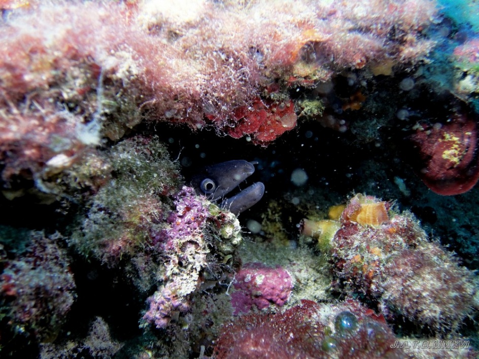 Bienvenido / Fotografias Submarinas / Fotografías Submarinas de Juan A. Torres / MORENA EN SU GRIETA