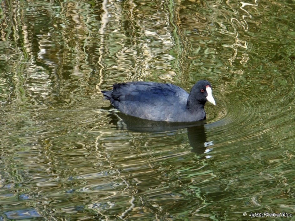 (10-04-2016) La fotja o fotja vulgar (Fulica atra), és una espècie d'ocell de la família dels ràl·lids, ordre dels gruïformes, comú a les zones humides. S'Albufera d'Alcúdia (Mallorca).