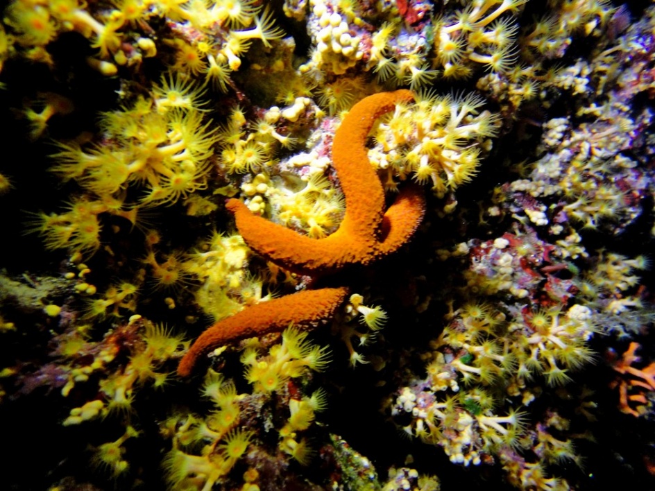 Bienvenido / Fotografias Submarinas / Fotografías Submarinas de Juan A. Torres / ESTRELLA ROJA Y ANEMONAS AMARILLAS