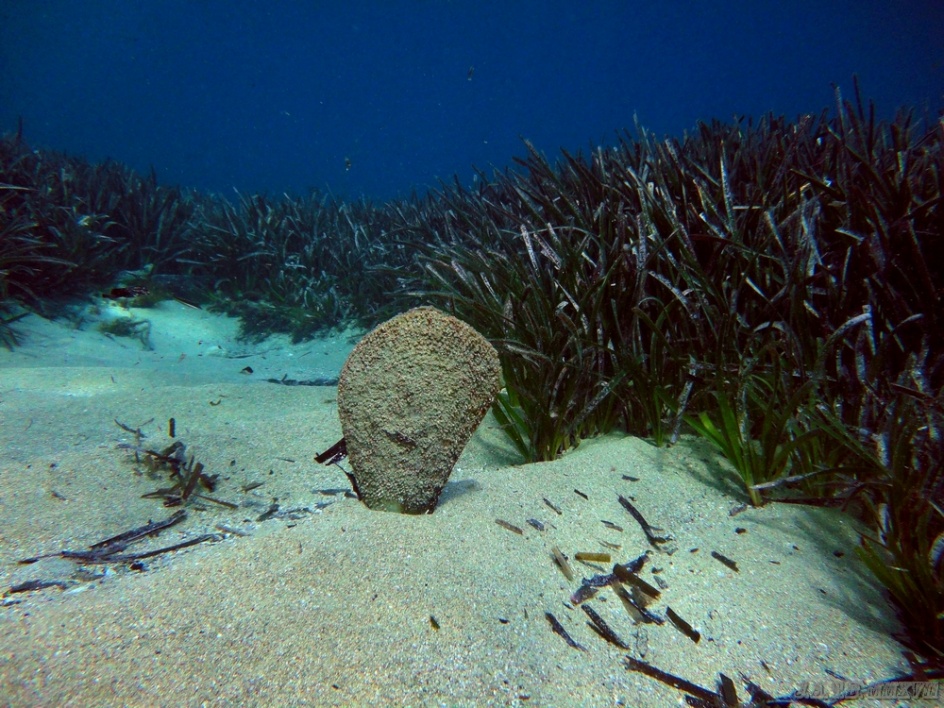 Bienvenido / Fotografias Submarinas / Fotografías Submarinas de Juan A. Torres / FONDO DE ARENA Y POSIDONIA CON UNA NACRA