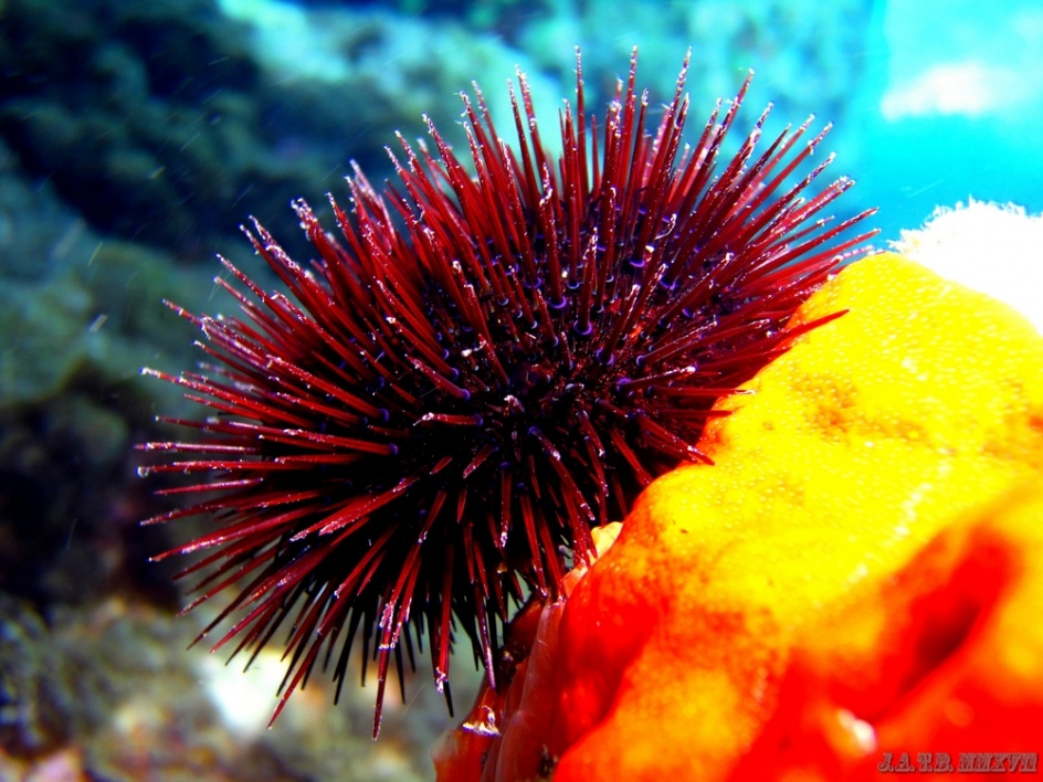 Bienvenido / Fotografias Submarinas / Fotografías Submarinas de Juan A. Torres / ERIZO SOBRE UNA ESPONJA