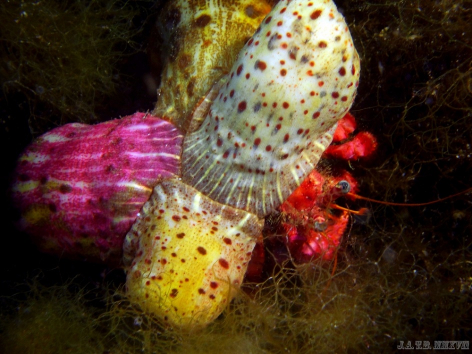 Bienvenido / Fotografias Submarinas / Fotografías Submarinas de Juan A. Torres / ANEMONAS SOBRE CANGREJO ERMITAÑO.