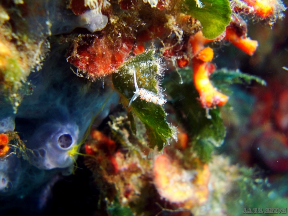 Bienvenido / Fotografias Submarinas / Fotografías Submarinas de Juan A. Torres / PEQUEÑO NUDIBRANQUIO Y ALGAS