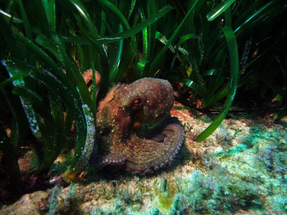 Bienvenido / Fotografias Submarinas / Fotografías Submarinas de Juan A. Torres / Pulpo en la Posidonia.