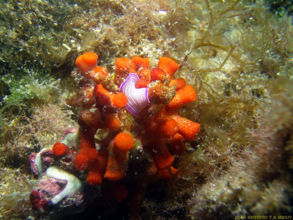 Bienvenido / Fotografias Submarinas / Fotografías Submarinas de Juan A. Torres / Planaria sobre colonia de hidrozoos