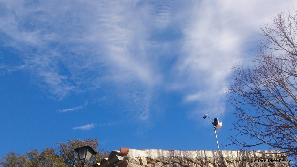 Estación Meteorológica del Catell d´Alaró, una dia de marzo con buen tiempo con algunas nubes tipo Cirros. Dia 27-03-2015