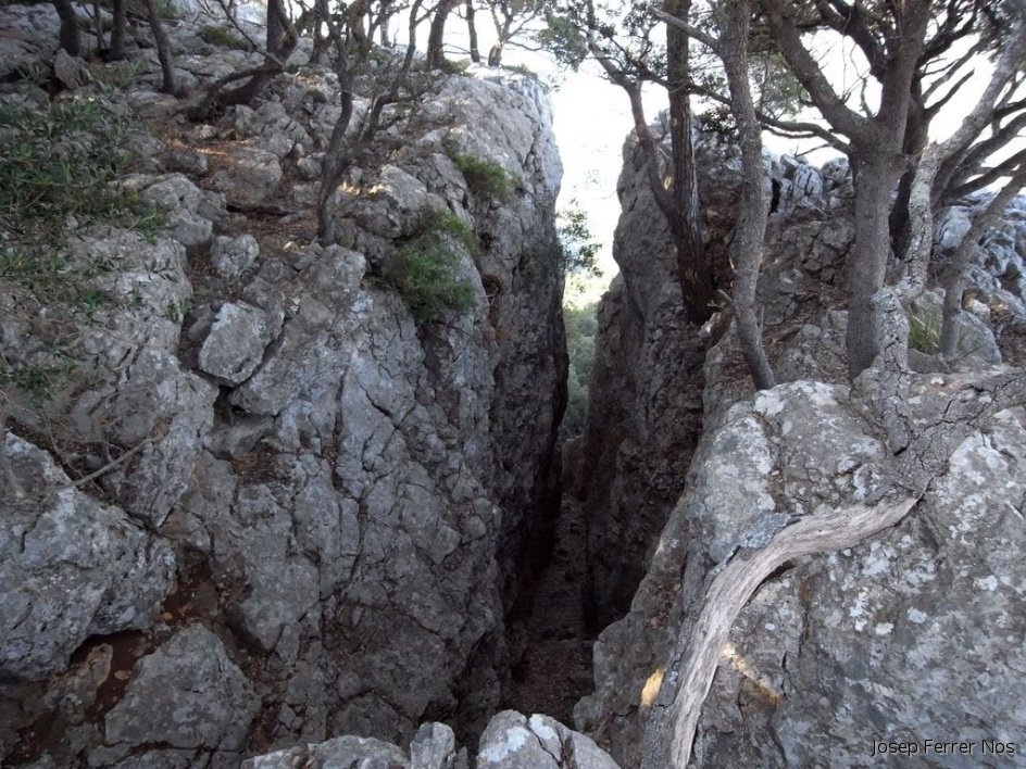 Estreta i alta clivella que forma el pas de na Lluïsa, situat entre Esporles i Puigpunyent que ens mena al Pla de Sobremunt.