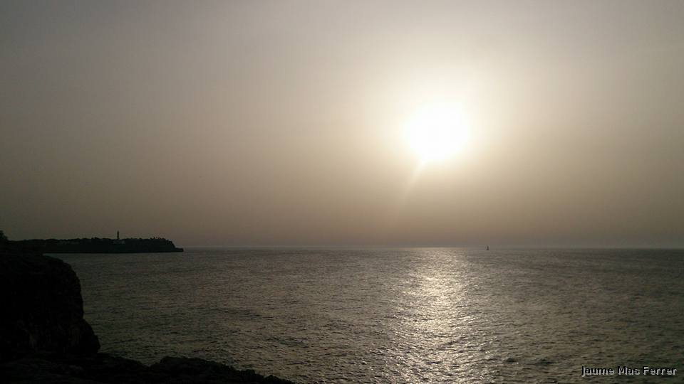Cielo cargado de polvo en suspensión, con temperaturas muy altas, Portocolom dia 14-05-2015.