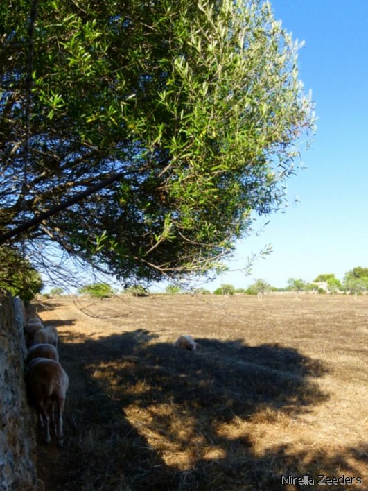 Las ovejas en el campo durante las temperaturas alta