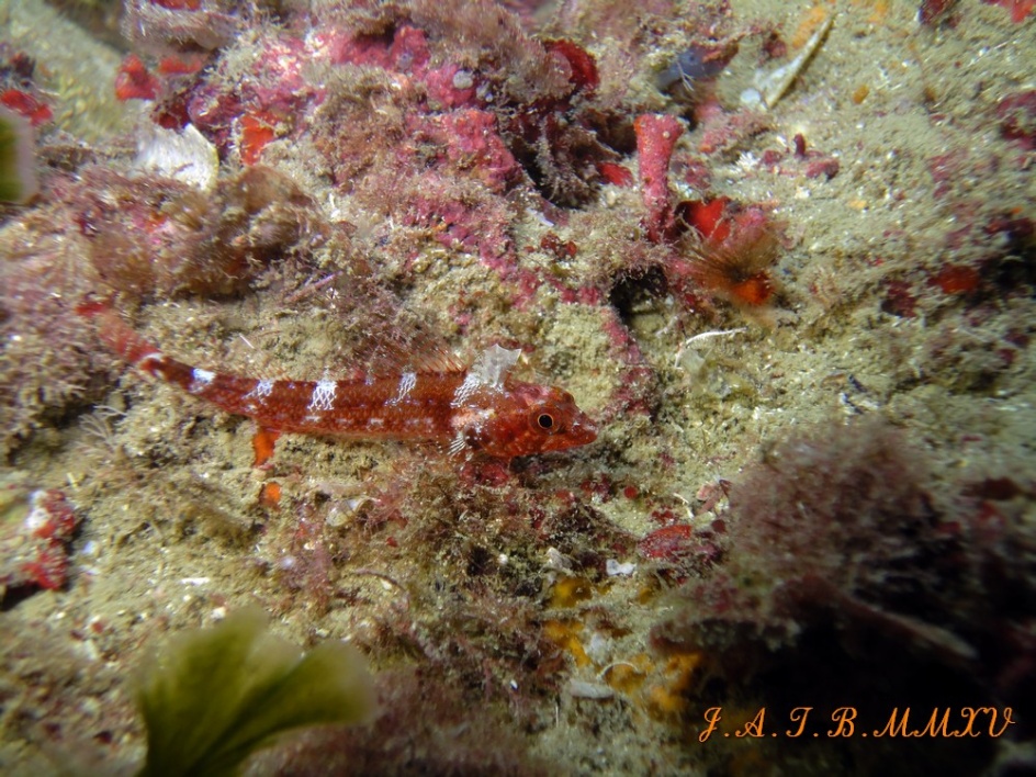 En esta foto se puede ver una hembra de esta especie, de pequeños peces que habitan en rocas y fondos rocosos