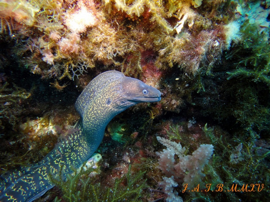 En los fondos de Dragonera hay muchas y grandes morenas que desafían a los fotosub si les molestas mucho.